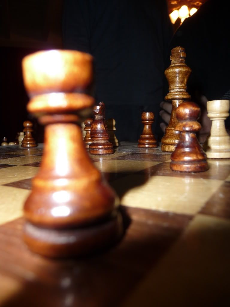 Today's picture was taken during my father's impromptu chess marathon on Friday night, at my sister's 18th birthday party. One by one, each of her friends in turn challenged him...and one by one, all of them seem to have been routed. One boy did bring it to a stalemate, but my dad remains the undefeated chess champion of our house.